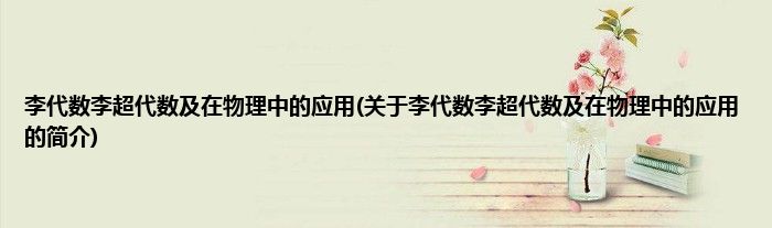 大家好,李代数李超代数及在物理中的应用,关于李代数李超代数及在物理中的应用的简介很多人还不知道,现在让我们一起来看看吧!