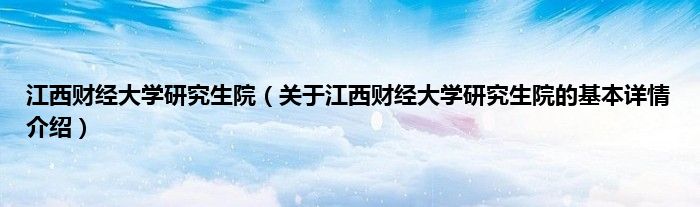 本文关于江西财经大学研究生院的基本详情介绍就讲解完毕,希望对大家有所帮助。