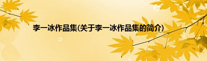 本文关于李一冰作品集的简介就讲解完毕,希望对大家有所帮助。