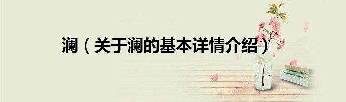 本文关于澜的基本详情介绍就讲解完毕,希望对大家有所帮助。