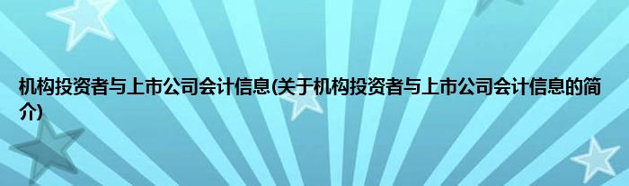 大家好,机构投资者与上市公司会计信息,关于机构投资者与上市公司会计信息的简介很多人还不知道,现在让我们一起来看看吧!