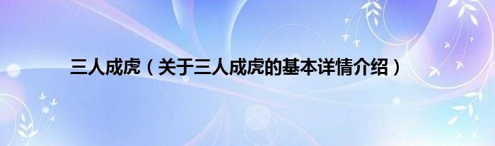 本文关于三人成虎的基本详情介绍就讲解完毕,希望对大家有所帮助。