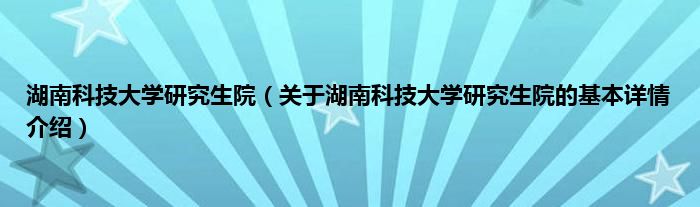 本文关于湖南科技大学研究生院的基本详情介绍就讲解完毕,希望对大家有所帮助。