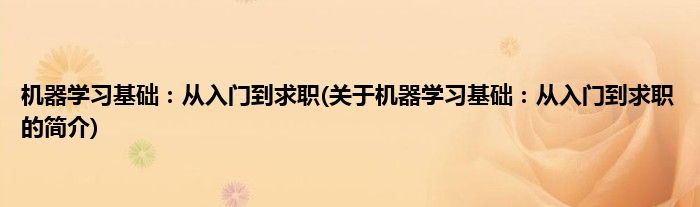 机器学习基础:从入门到求职(关于机器学习基础:从入门到求职的简介)