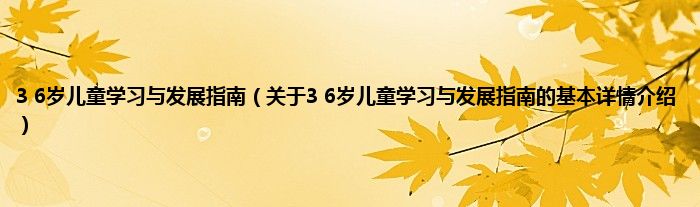 本文关于3 6岁儿童学习与发展指南的基本详情介绍就讲解完毕,希望对大家有所帮助。