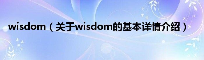 本文关于wisdom的基本详情介绍就讲解完毕,希望对大家有所帮助。