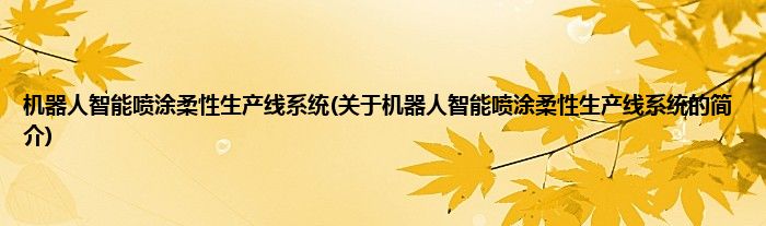 本文关于机器人智能喷涂柔性生产线系统的简介就讲解完毕,希望对大家有所帮助。