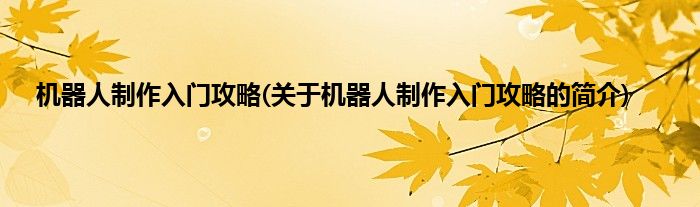 本文关于机器人制作入门攻略的简介就讲解完毕,希望对大家有所帮助。