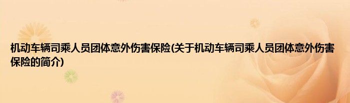 本文关于机动车辆司乘人员团体意外伤害保险的简介就讲解完毕,希望对大家有所帮助。