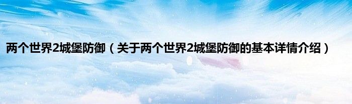 本文关于两个世界2城堡防御的基本详情介绍就讲解完毕,希望对大家有所帮助。