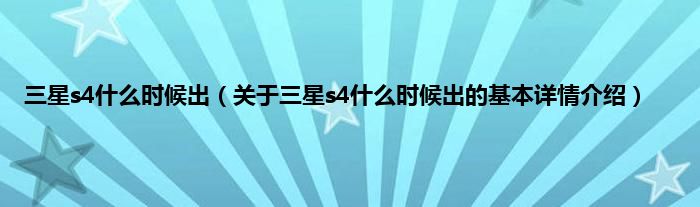 本文关于三星s4什么时候出的基本详情介绍就讲解完毕,希望对大家有所帮助。