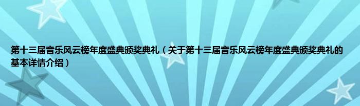 本文关于第十三届音乐风云榜年度盛典颁奖典礼的基本详情介绍就讲解完毕,希望对大家有所帮助。