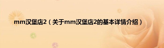 mm汉堡店2(关于mm汉堡店2的基本详情介绍)
