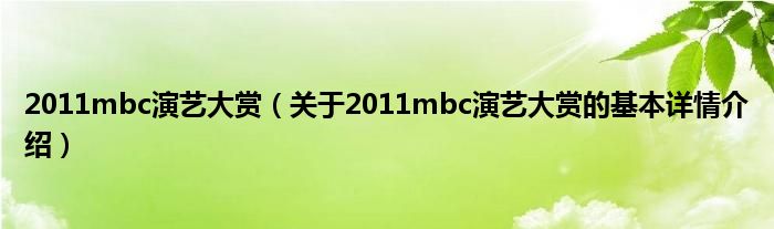 2011mbc演艺大赏(关于2011mbc演艺大赏的基本详情介绍)