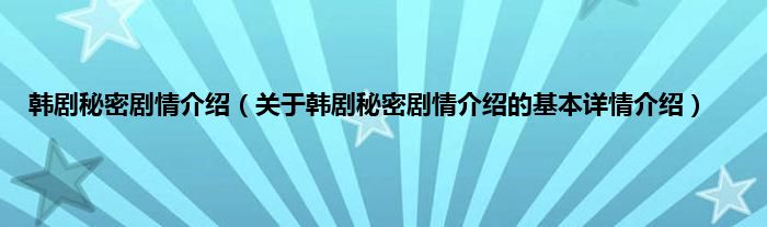 韩剧秘密剧情介绍(关于韩剧秘密剧情介绍的基本详情介绍)