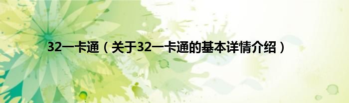 大家好我是小蝌蚪,32一卡通,关于32一卡通的基本详情介绍很多人还不知道,那么现在让我们一起来看看吧!