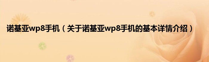 本文关于诺基亚wp8手机的基本详情介绍就讲解完毕,希望对大家有所帮助。
