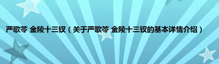 本文关于严歌苓 金陵十三钗的基本详情介绍就讲解完毕,希望对大家有所帮助。