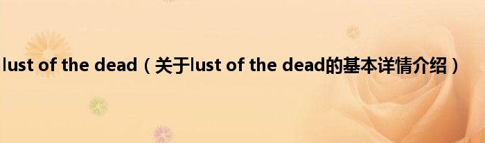 lust of the dead(关于lust of the dead的基本详情介绍)