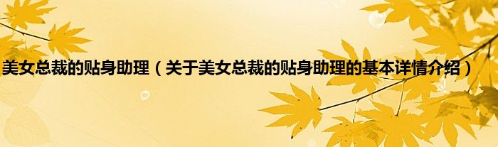 本文关于美女总裁的贴身助理的基本详情介绍就讲解完毕,希望对大家有所帮助。