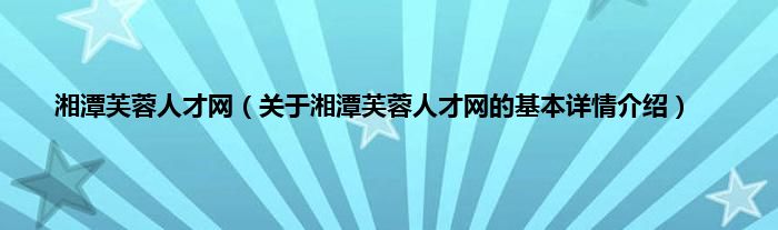 本文关于湘潭芙蓉人才网的基本详情介绍就讲解完毕,希望对大家有所帮助。