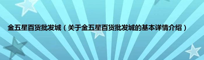 本文关于金五星百货批发城的基本详情介绍就讲解完毕,希望对大家有所帮助。
