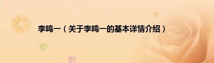 本文关于李鸣一的基本详情介绍就讲解完毕,希望对大家有所帮助。