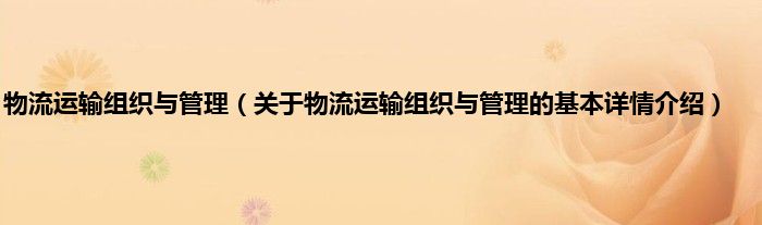 物流运输组织与管理(关于物流运输组织与管理的基本详情介绍)