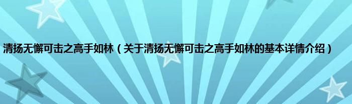 本文关于清扬无懈可击之高手如林的基本详情介绍就讲解完毕,希望对大家有所帮助。