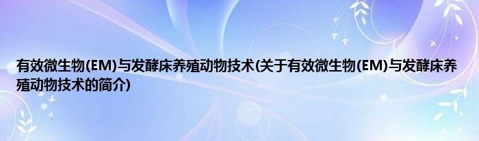 本文关于有效微生物(EM)与发酵床养殖动物技术的简介就讲解完毕,希望对大家有所帮助。