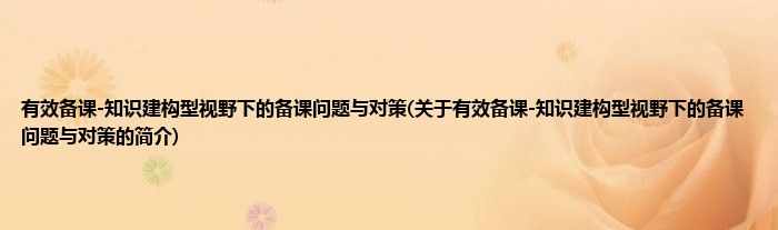 有效备课-知识建构型视野下的备课问题与对策(关于有效备课-知识建构型视野下的备课问题与对策的简介)