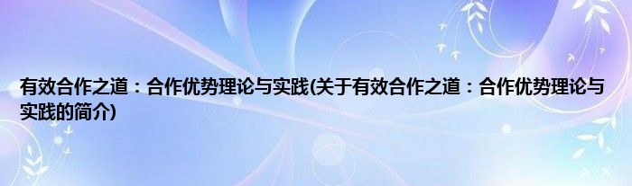 本文关于有效合作之道:合作优势理论与实践的简介就讲解完毕,希望对大家有所帮助。
