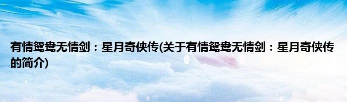 大家好,有情鸳鸯无情剑:星月奇侠传,关于有情鸳鸯无情剑:星月奇侠传的简介很多人还不知道,现在让我们一起来看看吧!