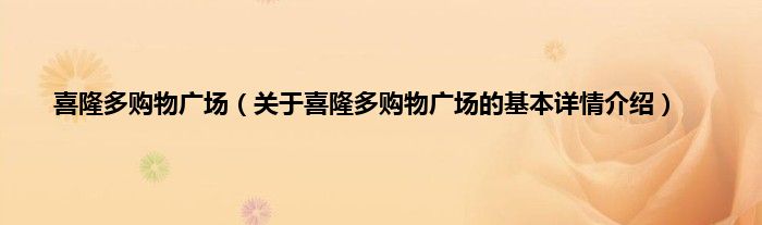 大家好我是小蝌蚪,喜隆多购物广场,关于喜隆多购物广场的基本详情介绍很多人还不知道,那么现在让我们一起来看看吧!