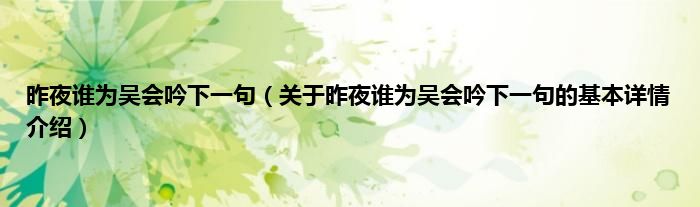 本文关于昨夜谁为吴会吟下一句的基本详情介绍就讲解完毕,希望对大家有所帮助。