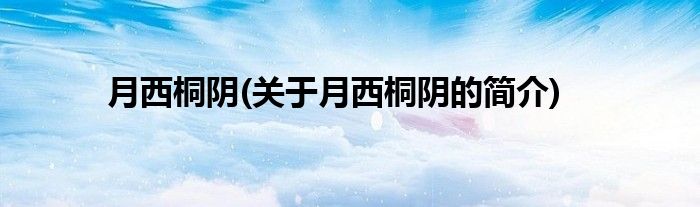 本文关于月西桐阴的简介就讲解完毕,希望对大家有所帮助。