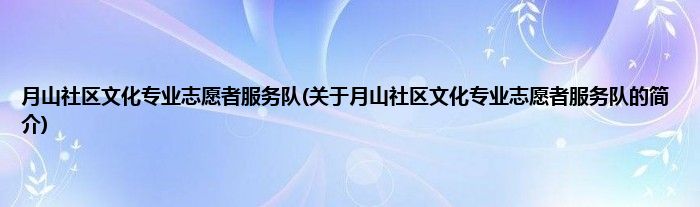 本文关于月山社区文化专业志愿者服务队的简介就讲解完毕,希望对大家有所帮助。