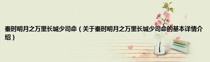 本文关于秦时明月之万里长城少司命的基本详情介绍就讲解完毕,希望对大家有所帮助。
