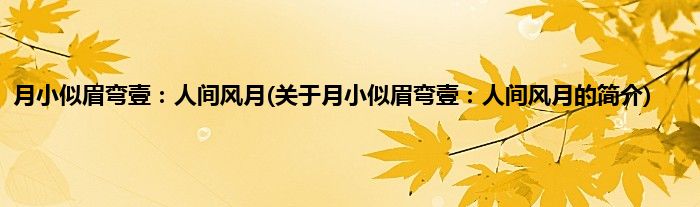 本文关于月小似眉弯壹:人间风月的简介就讲解完毕,希望对大家有所帮助。