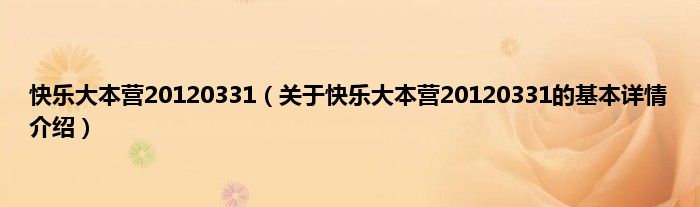 本文关于快乐大本营20120331的基本详情介绍就讲解完毕,希望对大家有所帮助。