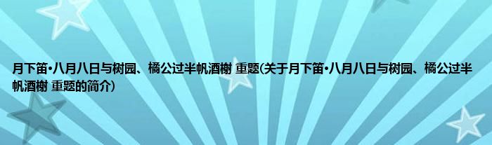 月下笛·八月八日与树园、橘公过半帆酒榭 重题(关于月下笛·八月八日与树园、橘公过半帆酒榭 重题的简介)