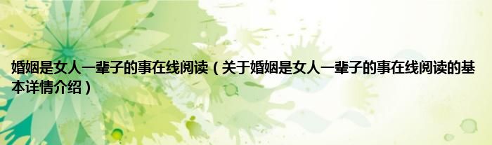 本文关于婚姻是女人一辈子的事在线阅读的基本详情介绍就讲解完毕,希望对大家有所帮助。