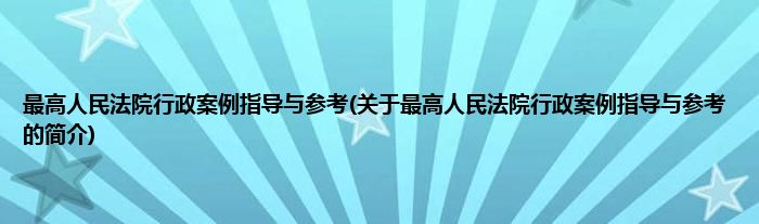 最高人民法院行政案例指导与参考(关于最高人民法院行政案例指导与参考的简介)