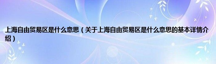 本文关于上海自由贸易区是什么意思的基本详情介绍就讲解完毕,希望对大家有所帮助。
