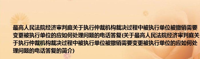 本文关于最高人民法院经济审判庭关于执行仲裁机构裁决过程中被执行单位被撤销需要变更被执行单位的应如何处理问题的电话答复的简介就讲解完毕,希望对大家有所帮助。