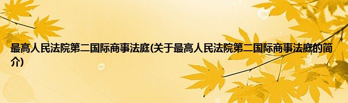 最高人民法院第二国际商事法庭(关于最高人民法院第二国际商事法庭的简介)