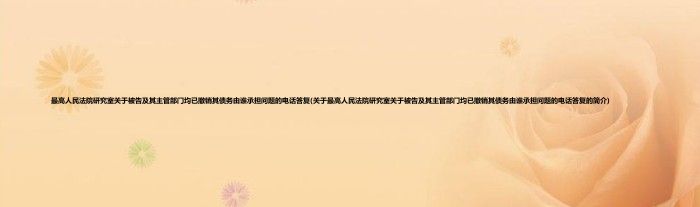 本文关于最高人民法院研究室关于被告及其主管部门均已撤销其债务由谁承担问题的电话答复的简介就讲解完毕,希望对大家有所帮助。