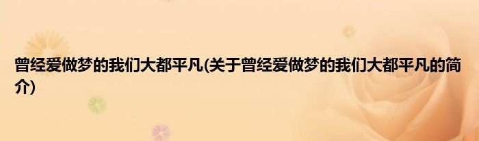 曾经爱做梦的我们大都平凡(关于曾经爱做梦的我们大都平凡的简介)