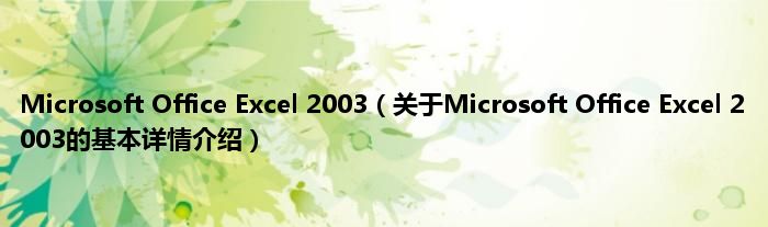 本文关于Microsoft Office Excel 2003的基本详情介绍就讲解完毕,希望对大家有所帮助。