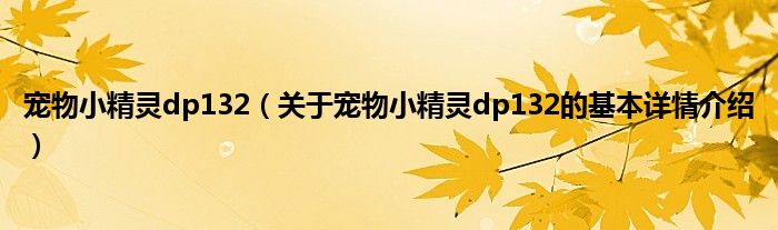 本文关于宠物小精灵dp132的基本详情介绍就讲解完毕,希望对大家有所帮助。